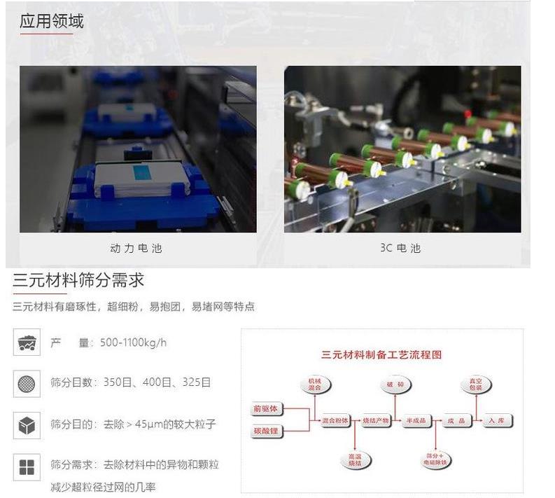由于超聲波振動在新能源行業的**表現,在線清網效果明顯,對于比較難篩分的物料有其顯著的效果。